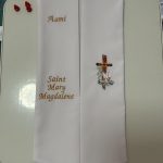 Style 1 – Confirmation/RCIA Stole includes: Candidate’s name,  Saint name and Christian symbol.